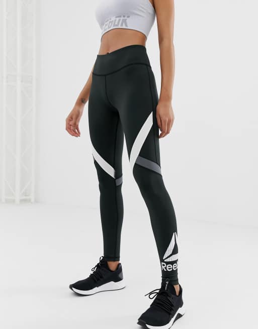 Product Item: Reebok training logo leggings online in black and white